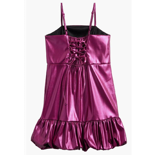 Tween Metallic Faux Leather Bubble Party Dress: MAGENTA / 12