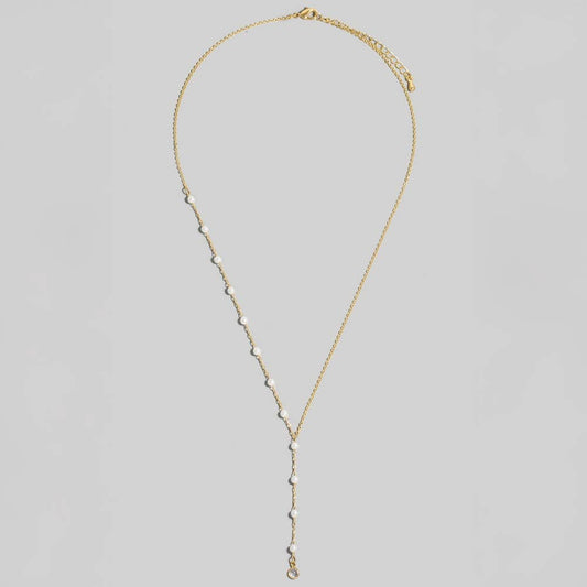 Dainty Chain Pearl Bead Lariat Necklace