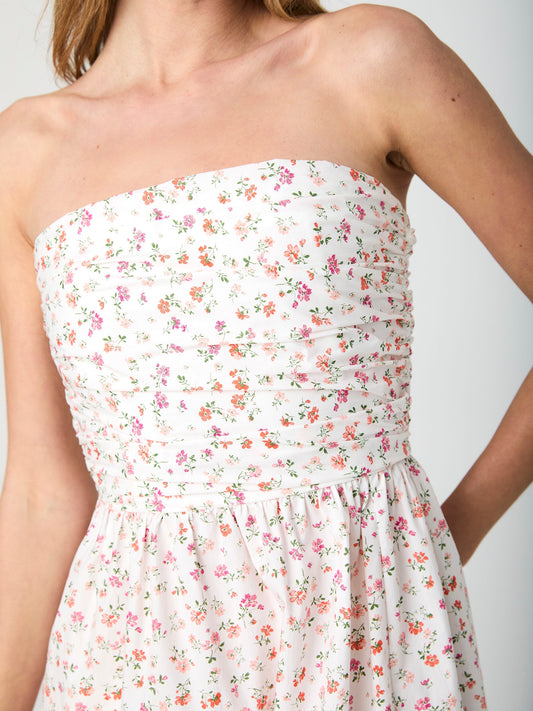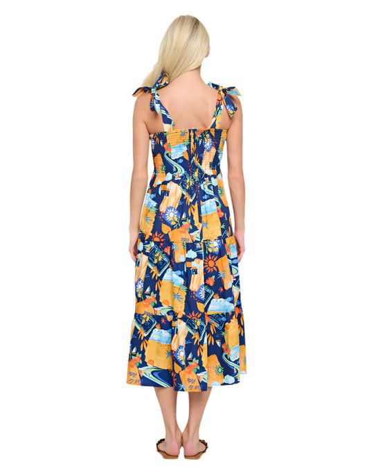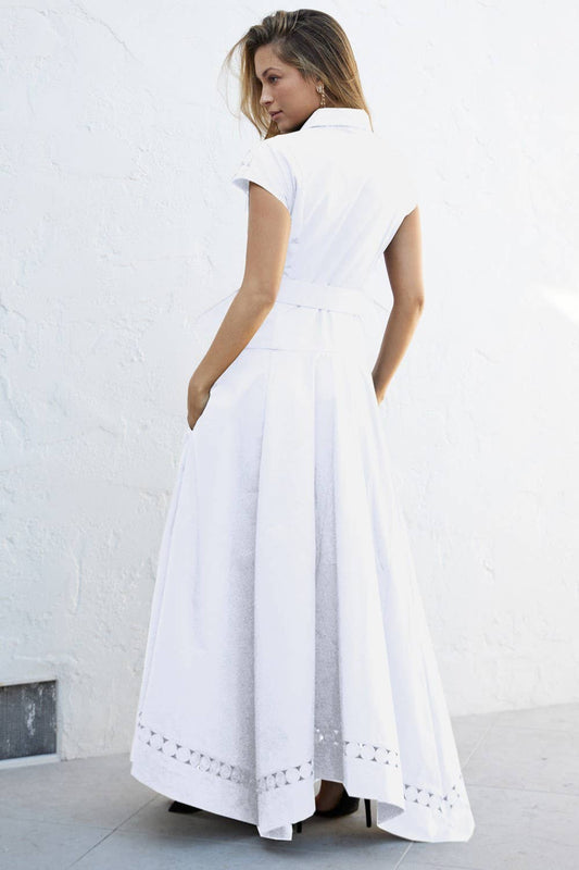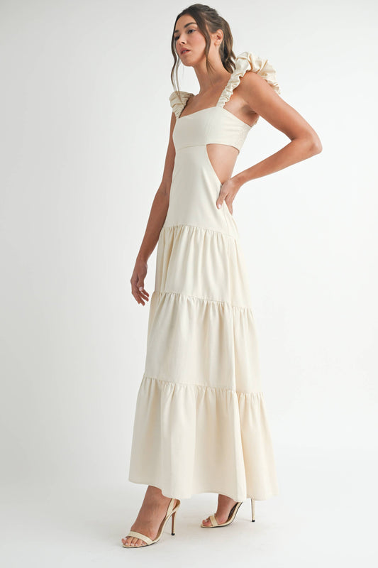 Floral Cut Out Tiered Cotton Linen Maxi Dress