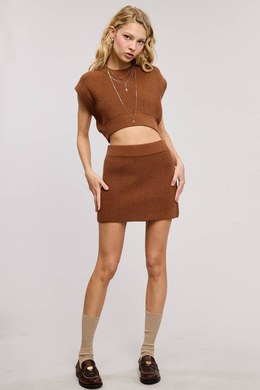 TURTLE NECK CAP SLEEVE TOP CHOCOLATE