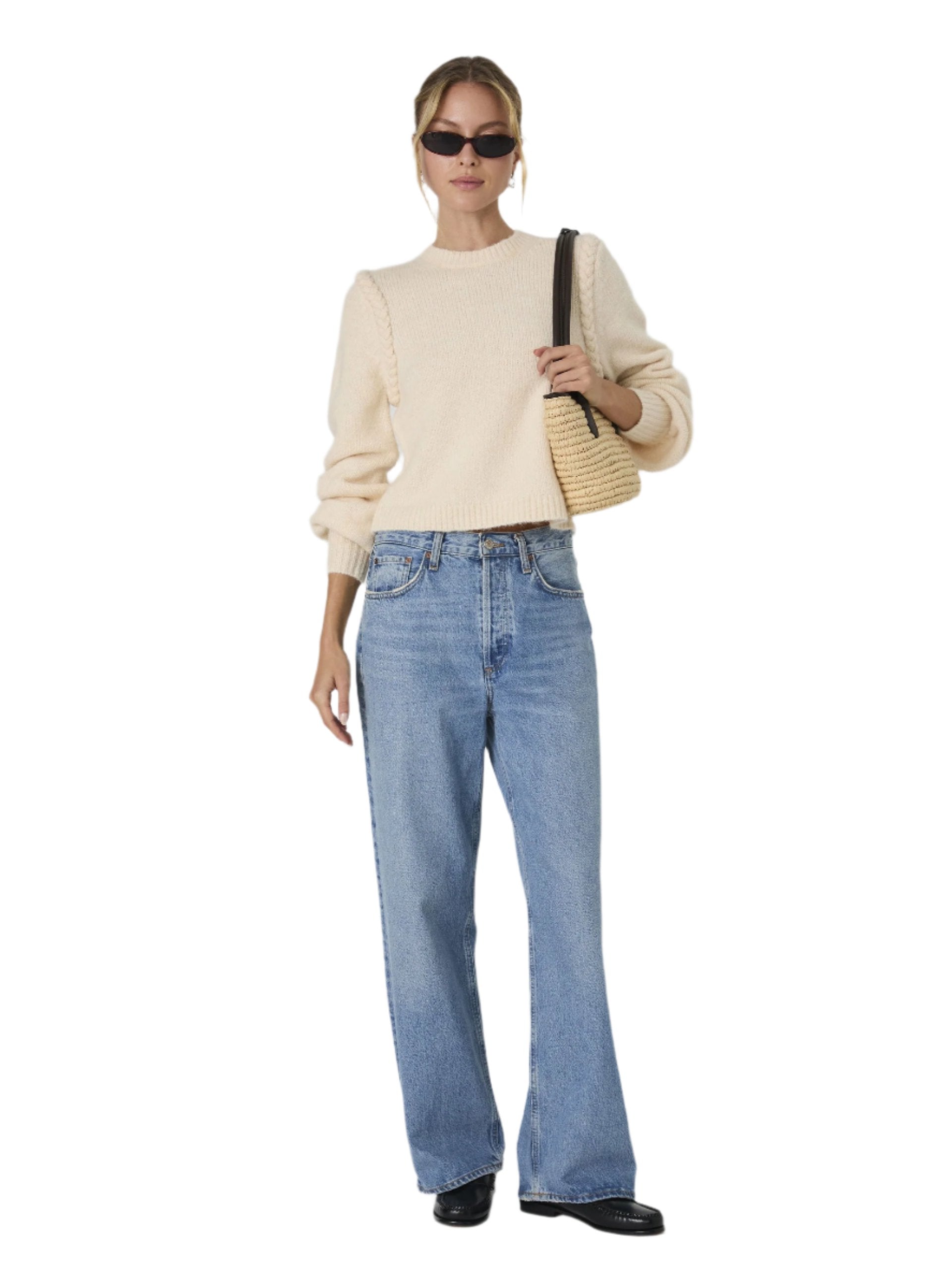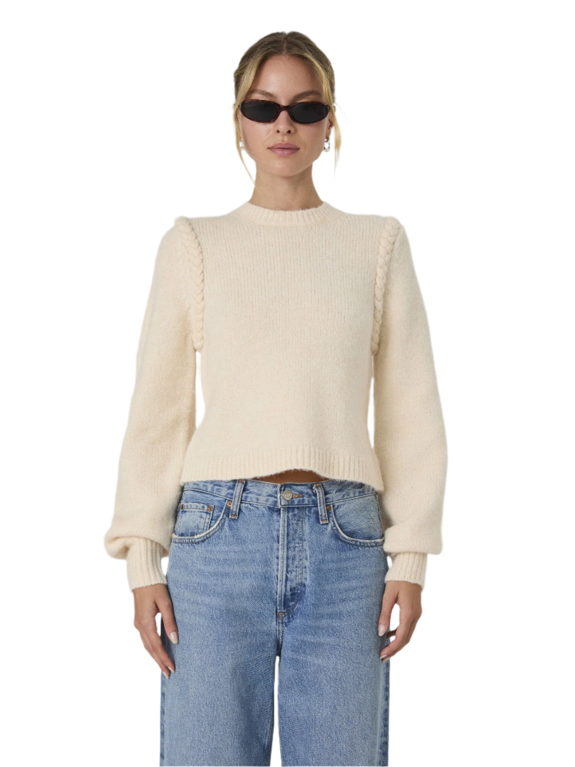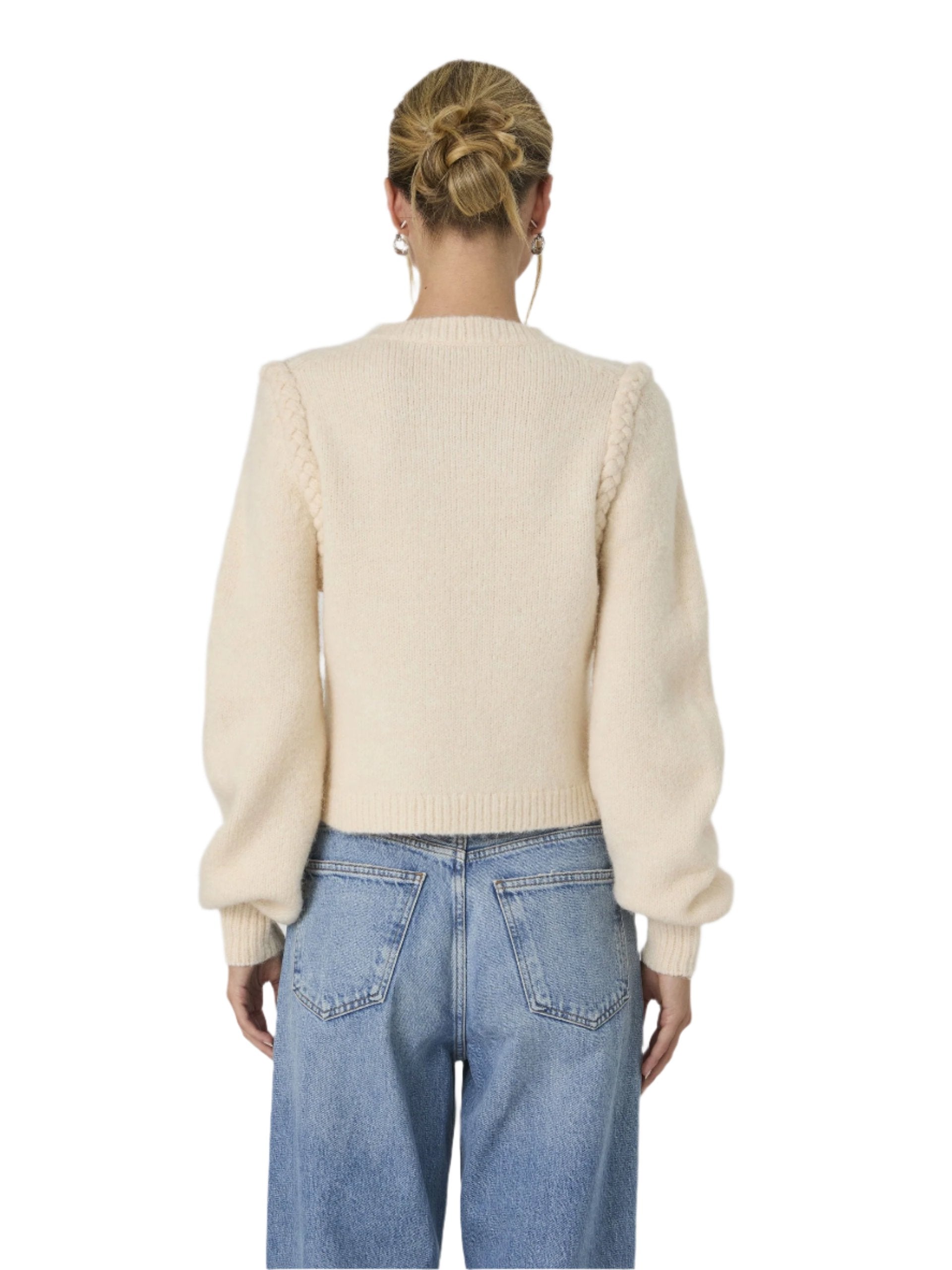 Introducing our Fluffy Knit Braided Detail Sweater! Made with luxurious, fluffy yarn and beautifully crafted braid detailing, this sweater will keep you warm and stylish. Feel cozy and chic with this must-have addition to your wardrobe. Embrace the comfort and elegance this sweater brings.