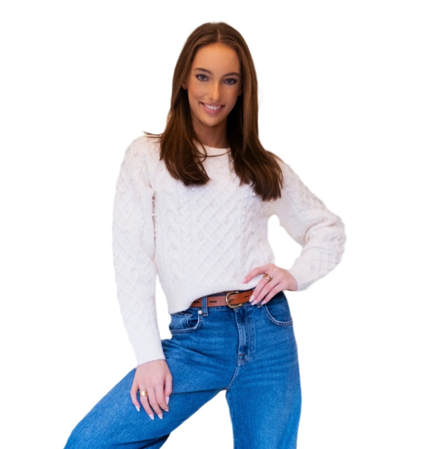 Get ready to turn heads with our Luxe Sweater! This cozy knit sweater will keep you warm and stylish all season long. Adorned with cute cream pearls, this sweater is the perfect mix of glamour and comfort. Pre-order now and be the first to rock this unique piece!