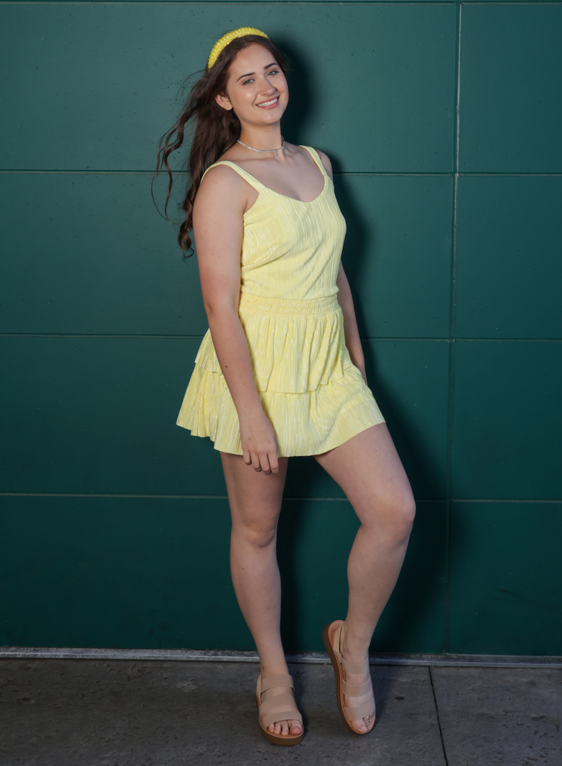 Pleated 2 tiered dress with smocked back panel and adjustable straps