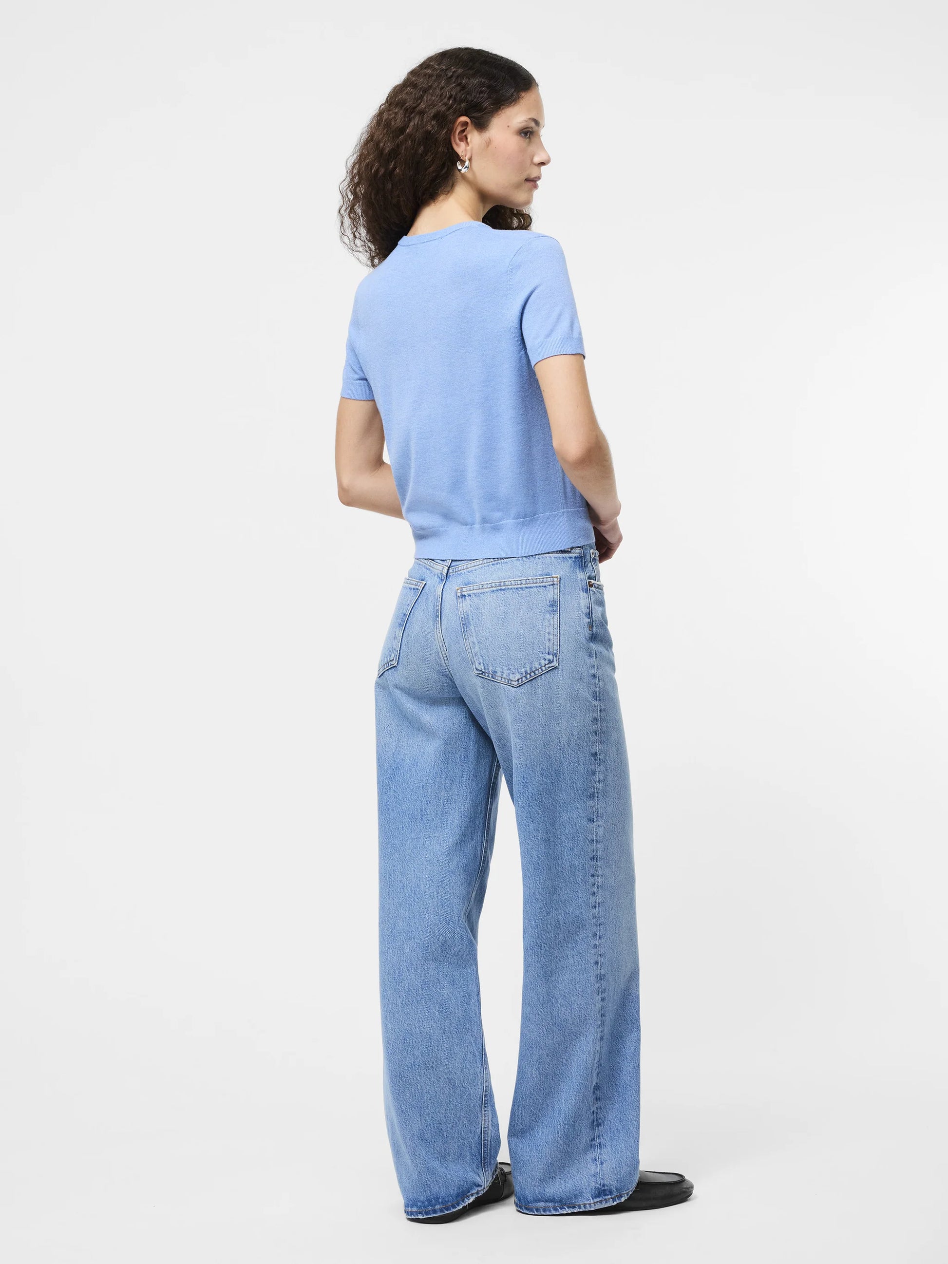 The Nola Fine Knit Short Sleeve Sweater is a refined staple you’ll reach for again and again. With a smooth jersey knit body and subtle rib trim, it’s soft, lightweight, and polished enough to dress up or down. Simple, versatile, and quietly elevated.