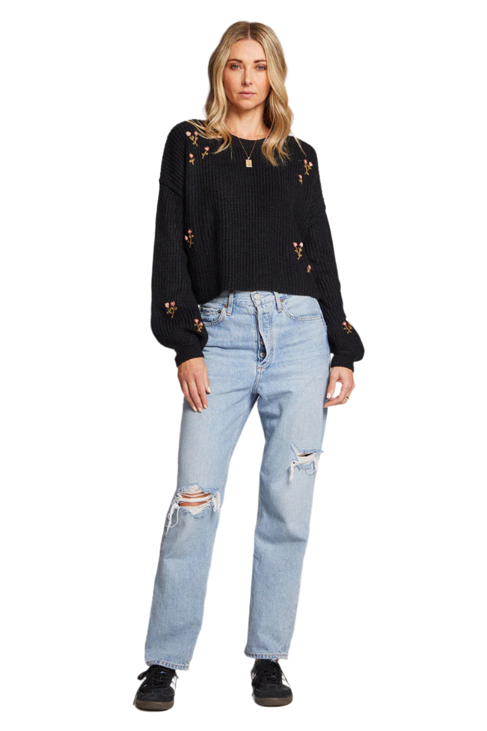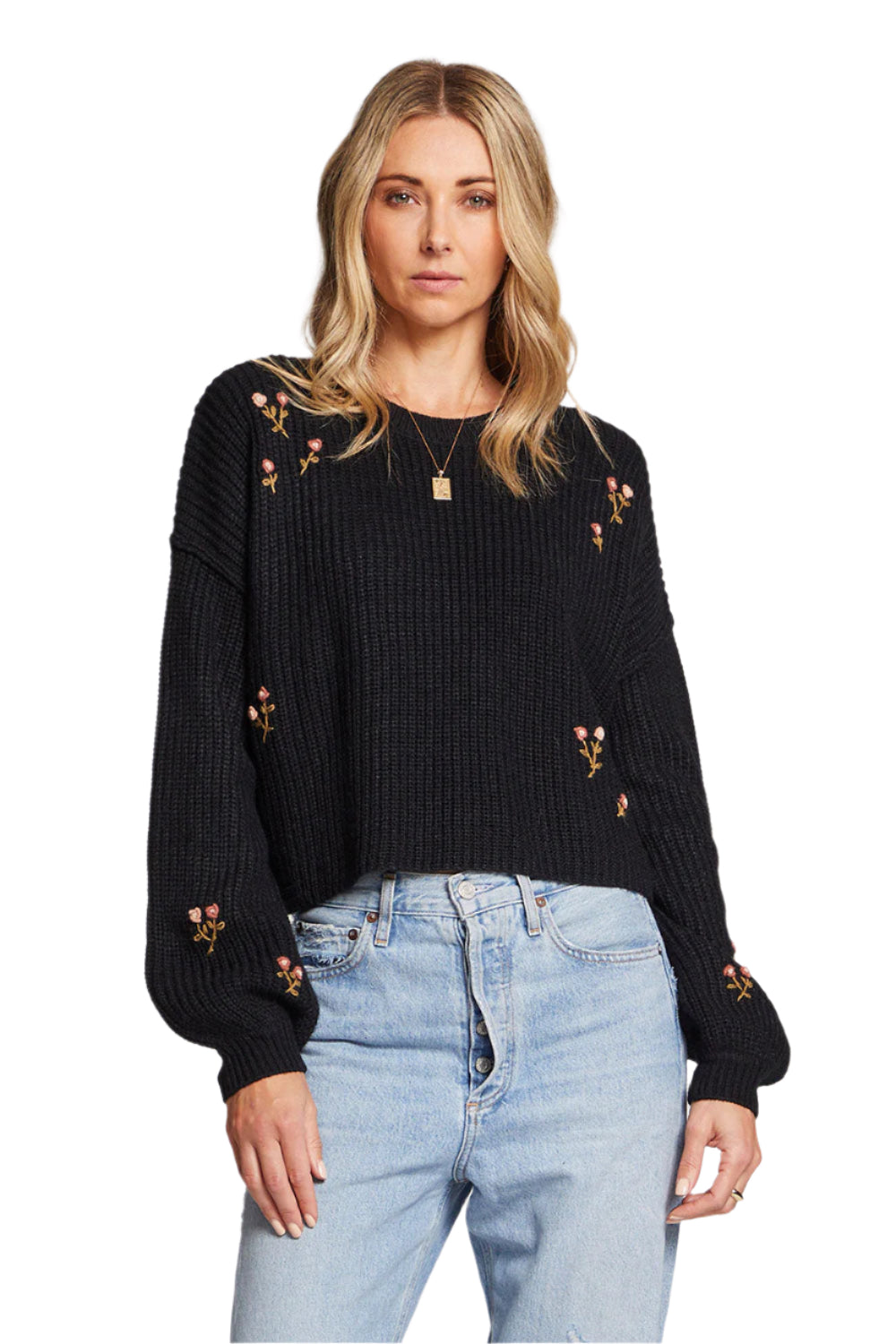 It starts with a classic black pullover style, perfectly cropped with a soft scoop neck and generous sleeves.