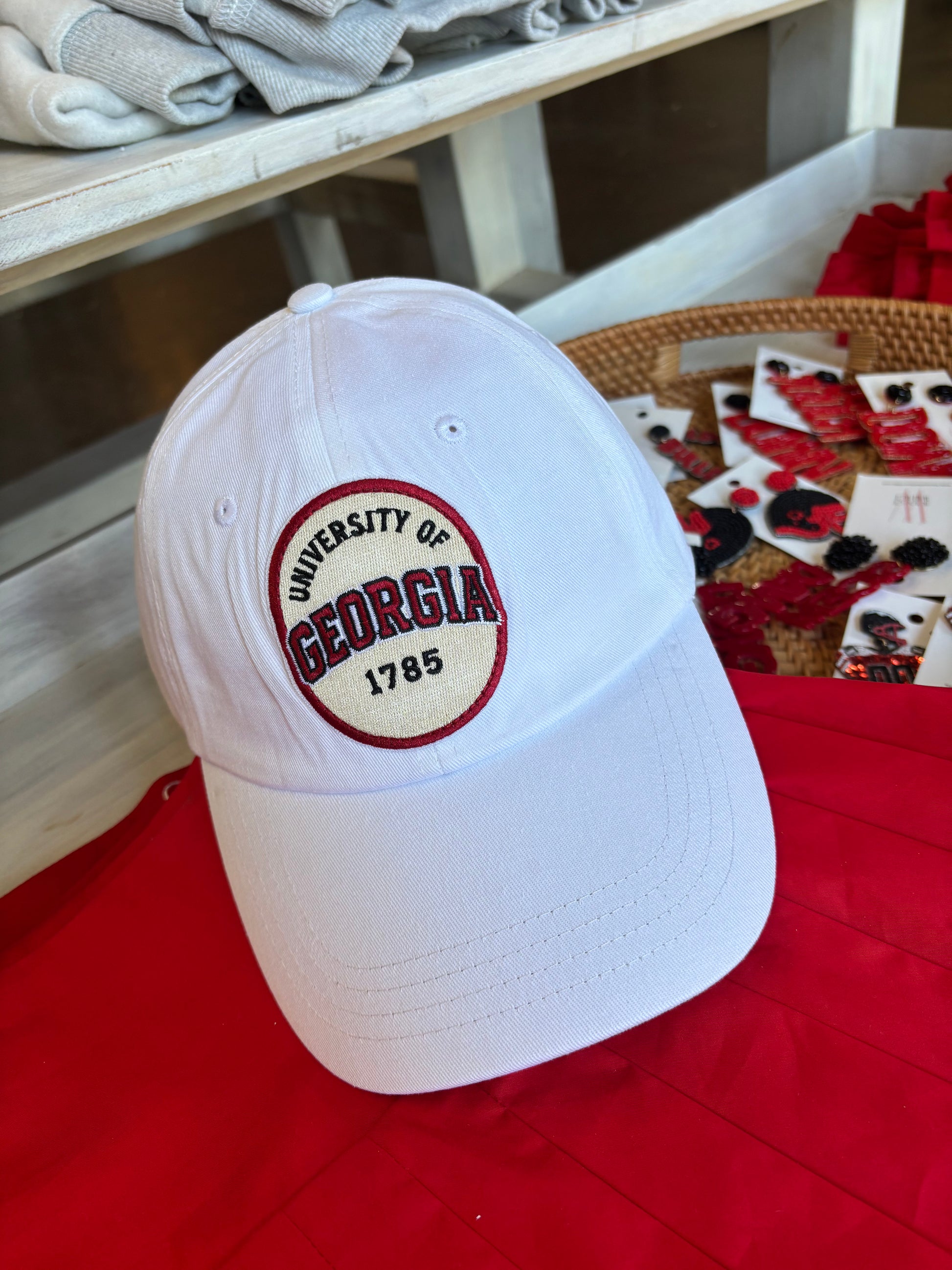 One size adjustable white baseball cap with House of Wallace custom vintage Georgia patch