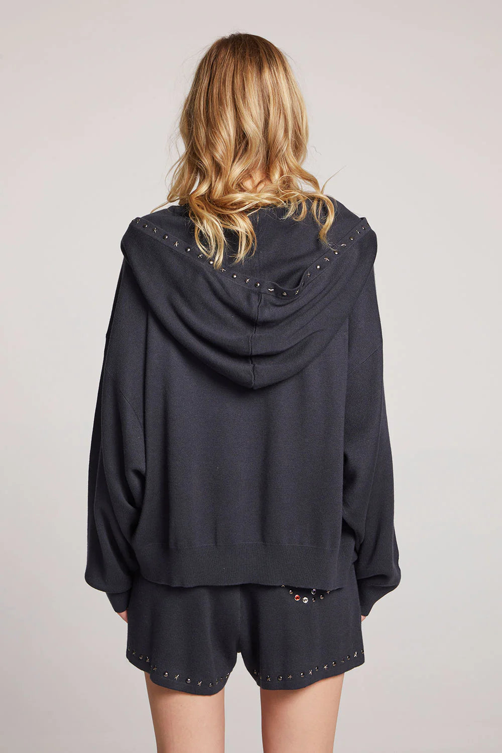 Gems wink brightly from this long sleeve’s black fabric, catching the light of the full moon.