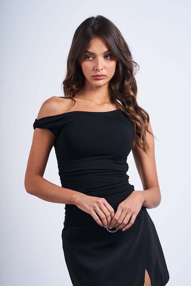 Solid Color Asymmetric One-Shoulder Sleeveless Slim Fit-In Casual Plain Top SELF:95%RAYON/5%SPAN