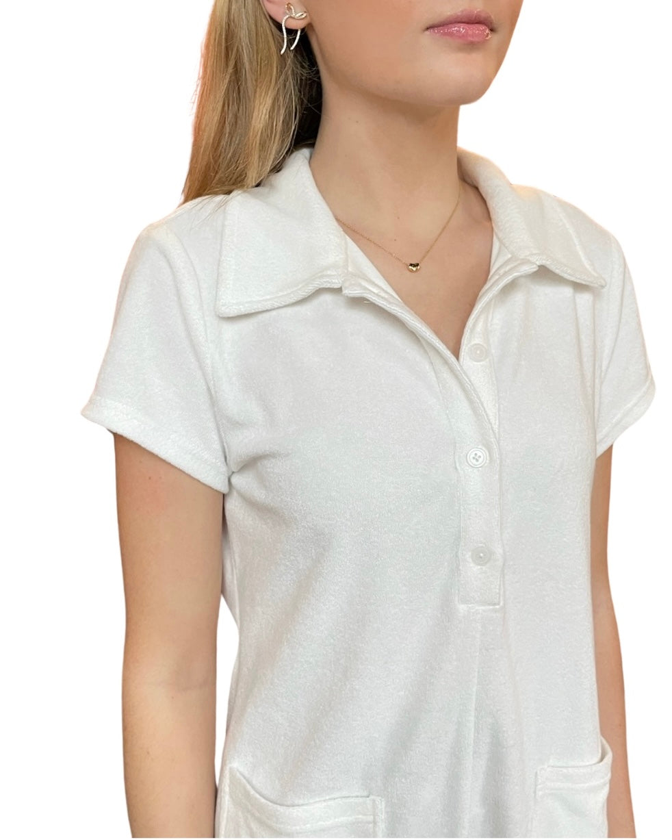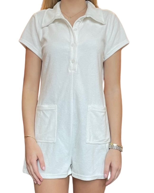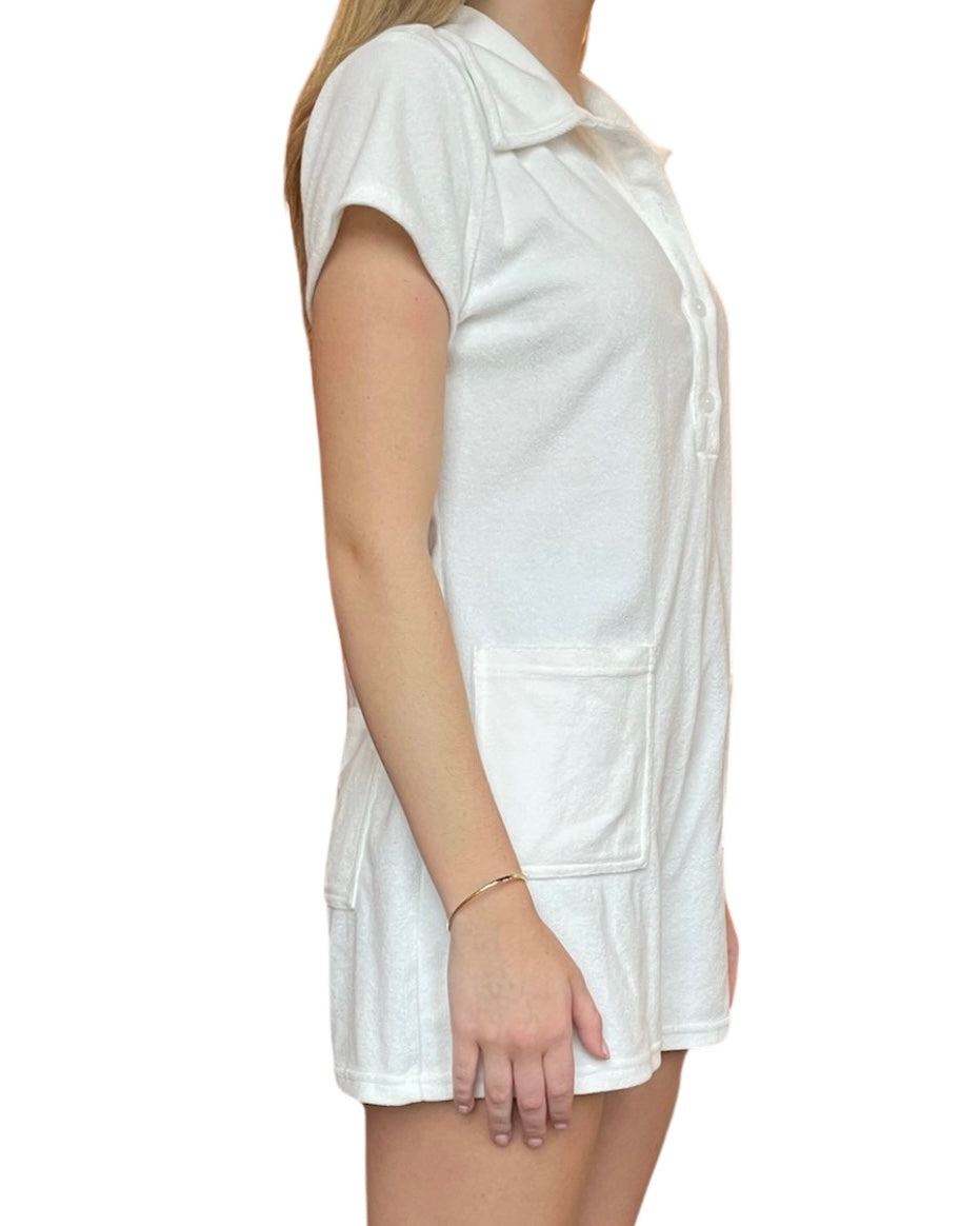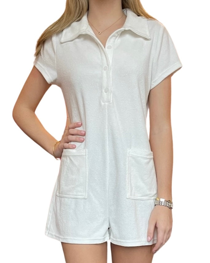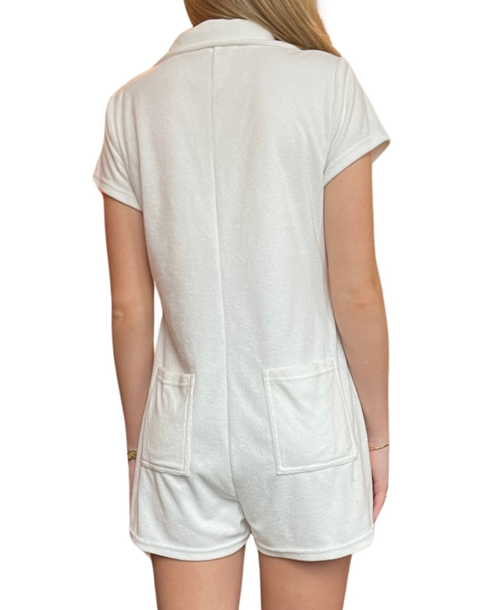 A summer staple with a chic twist. Our French Terry Front Button Romper is the perfect companion for a day at the beach or a day at the country club. It's playful and stylish while still being comfortable and practical.