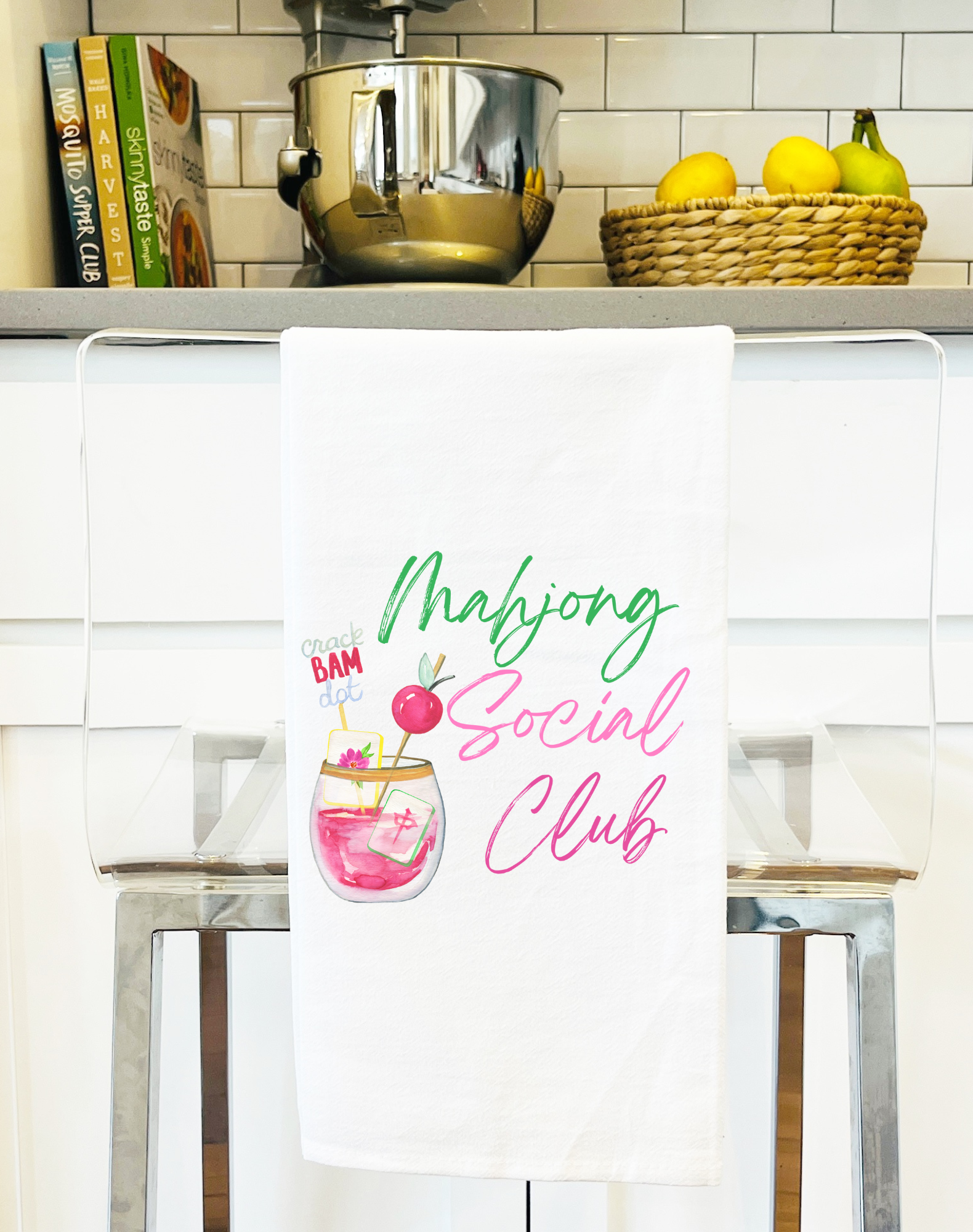 Darling mahjong gift-flour sack towel with watercolor Mahjong Social Club Perfect for girlfriend gifts, birthday gifts, tea towel sections, and impulse sections.