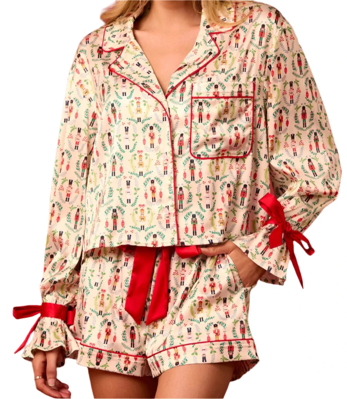 Say hello to your new favorite holiday Nutcracker Pajama Set! This cute design and fun patterns make it an excellent choice for lounging around the house or for a holiday pajama party. Get ready to bring some festive cheer with these pajamas!