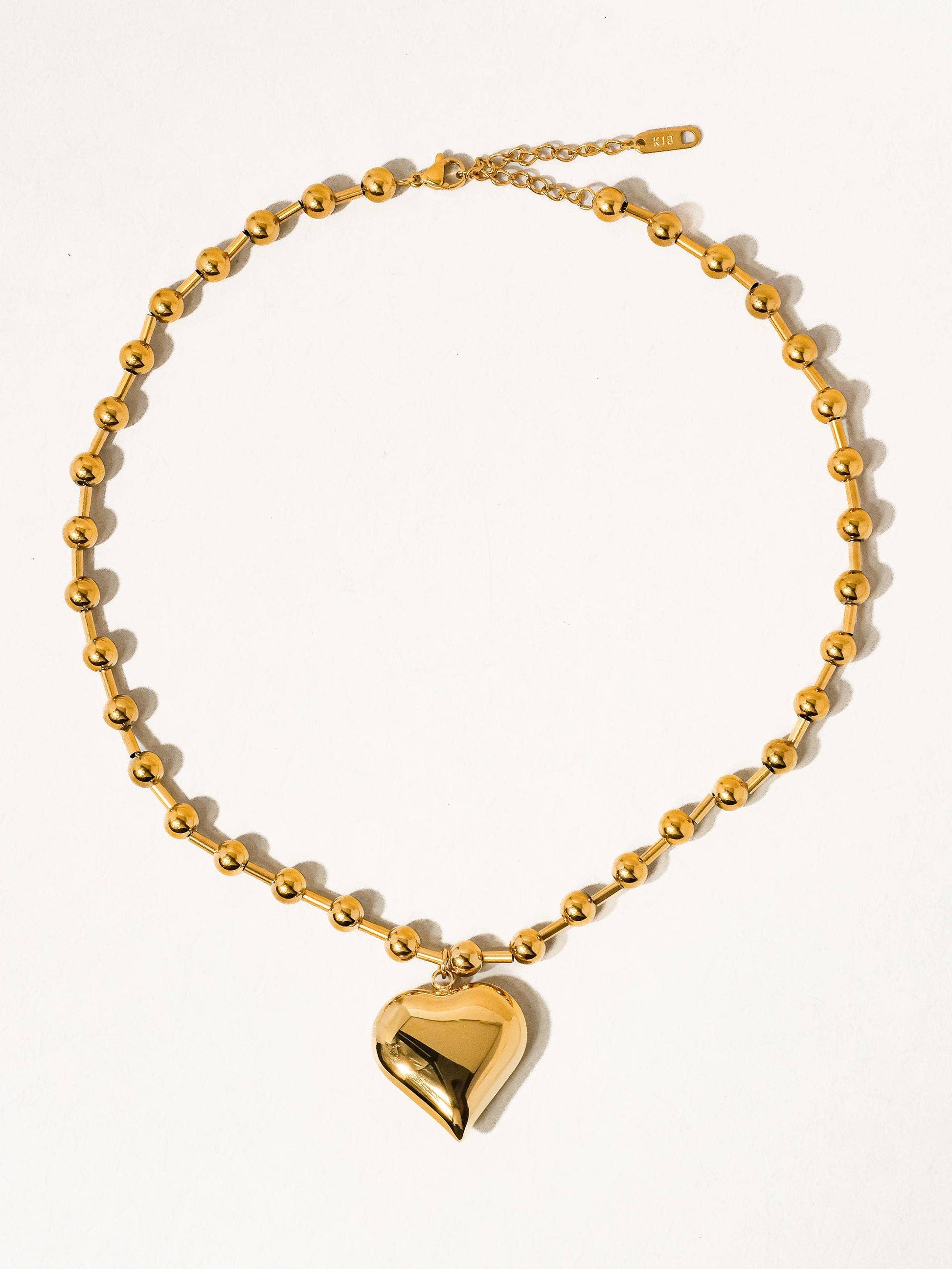 Paris 18K Gold Non-Tarnish Large Heart Chain Necklace: Yellow Gold / Ball Chain