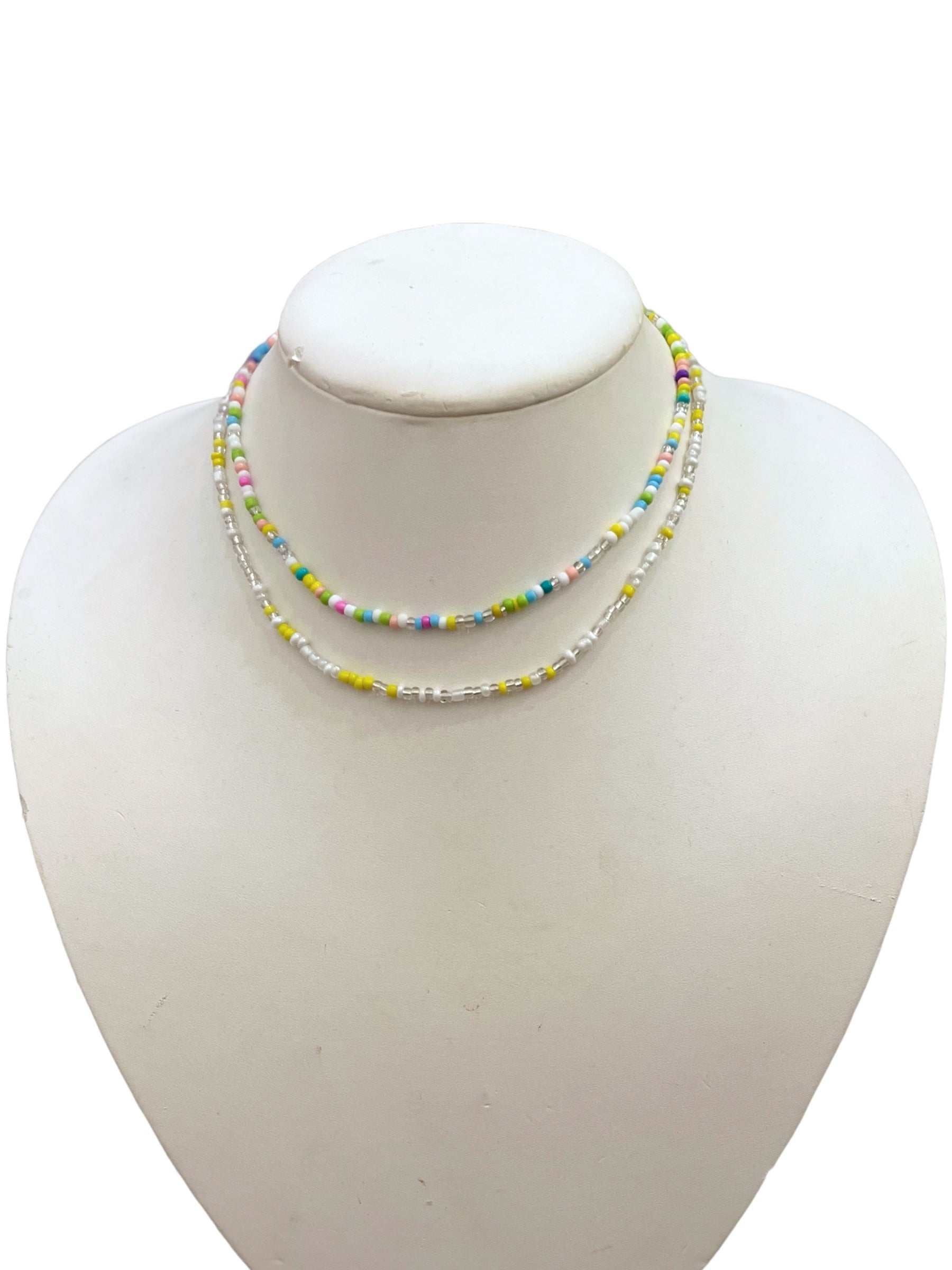 14" seed bead necklace with a 3" silver adjustable toggle.