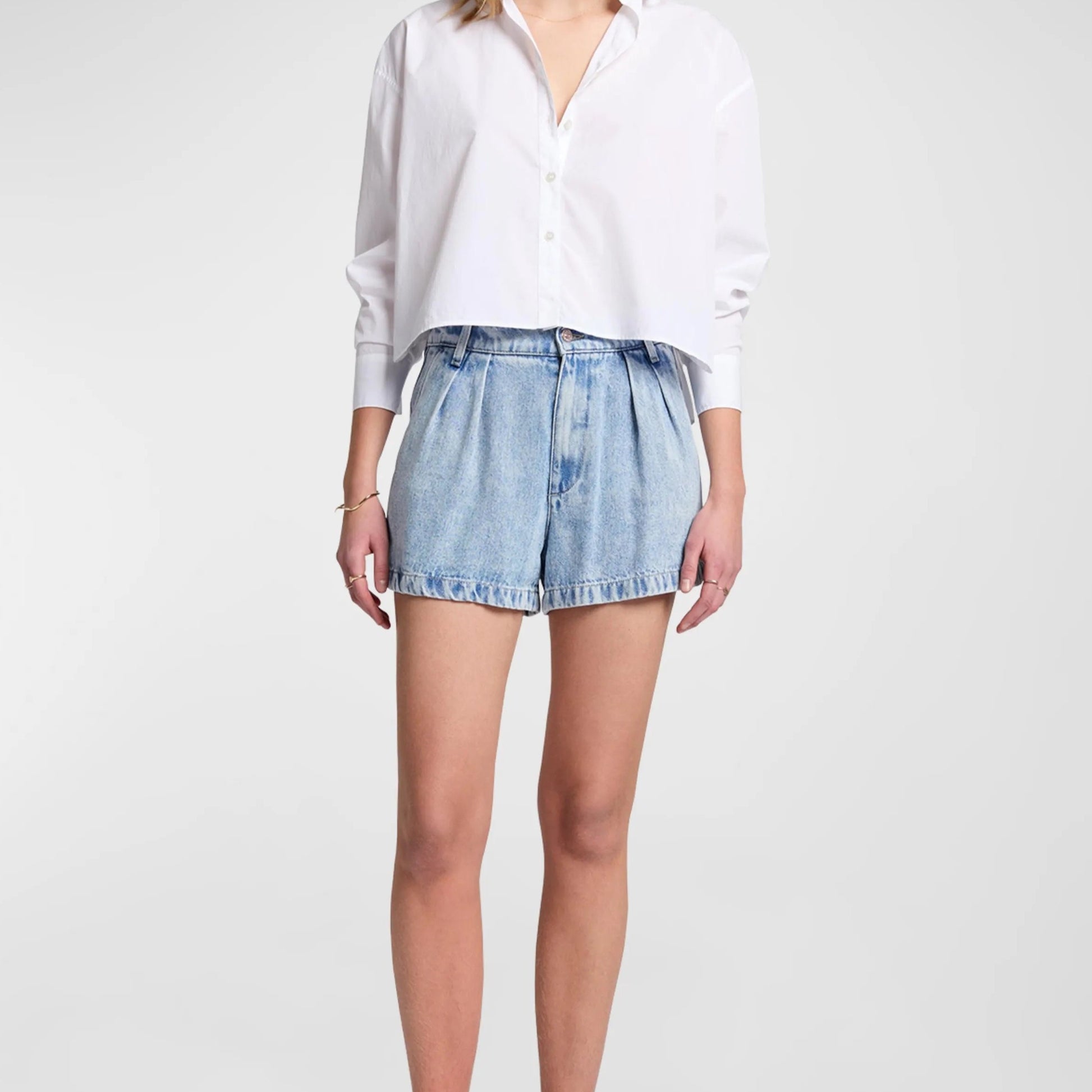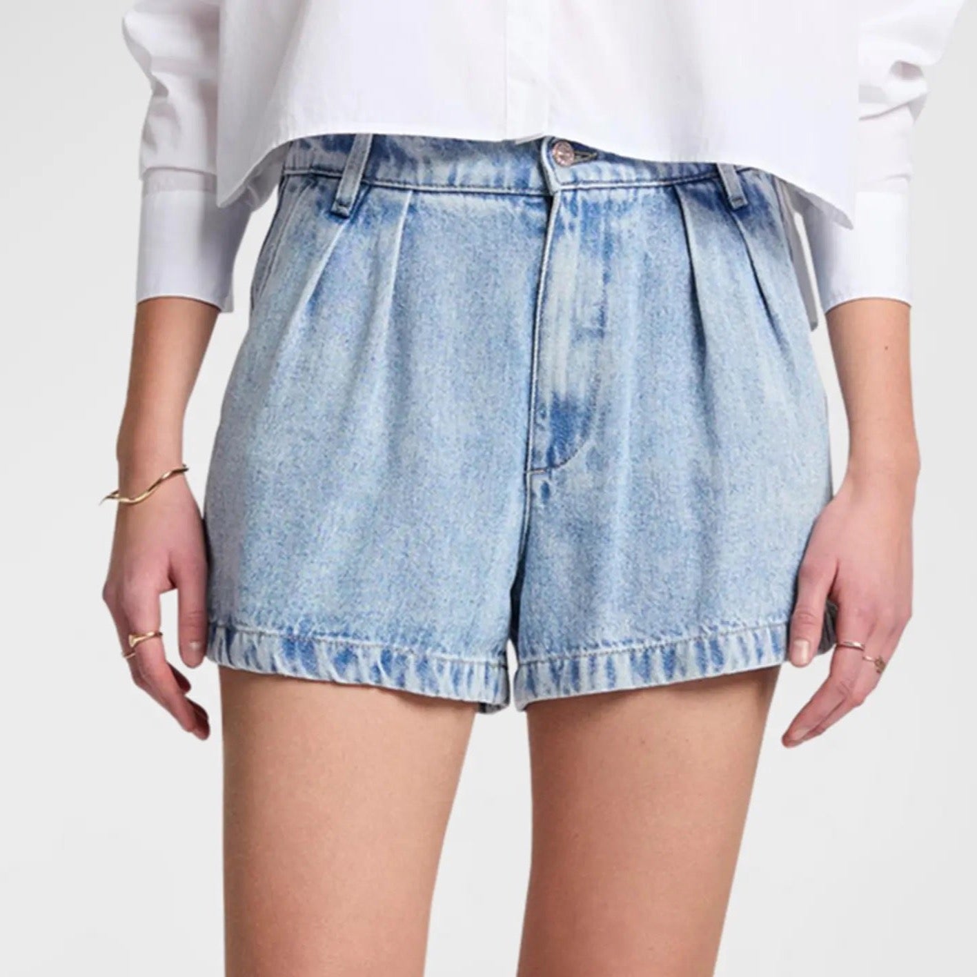 7 For All Mankind shorts featuring a pleated front in light-weight denim