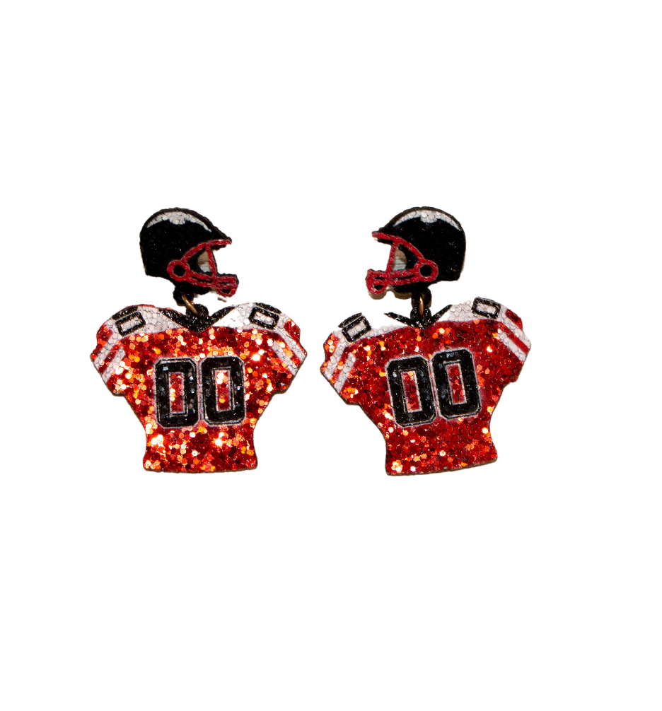 Red & black glitter helmet and jersey 2." drop studded earrings