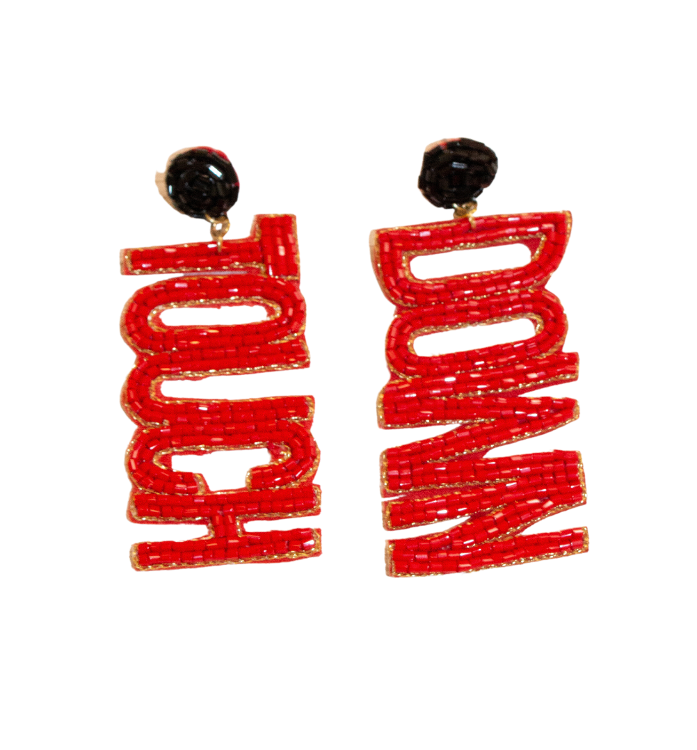 Red & black "Touchdown" 3.5" beaded drop studded earrings