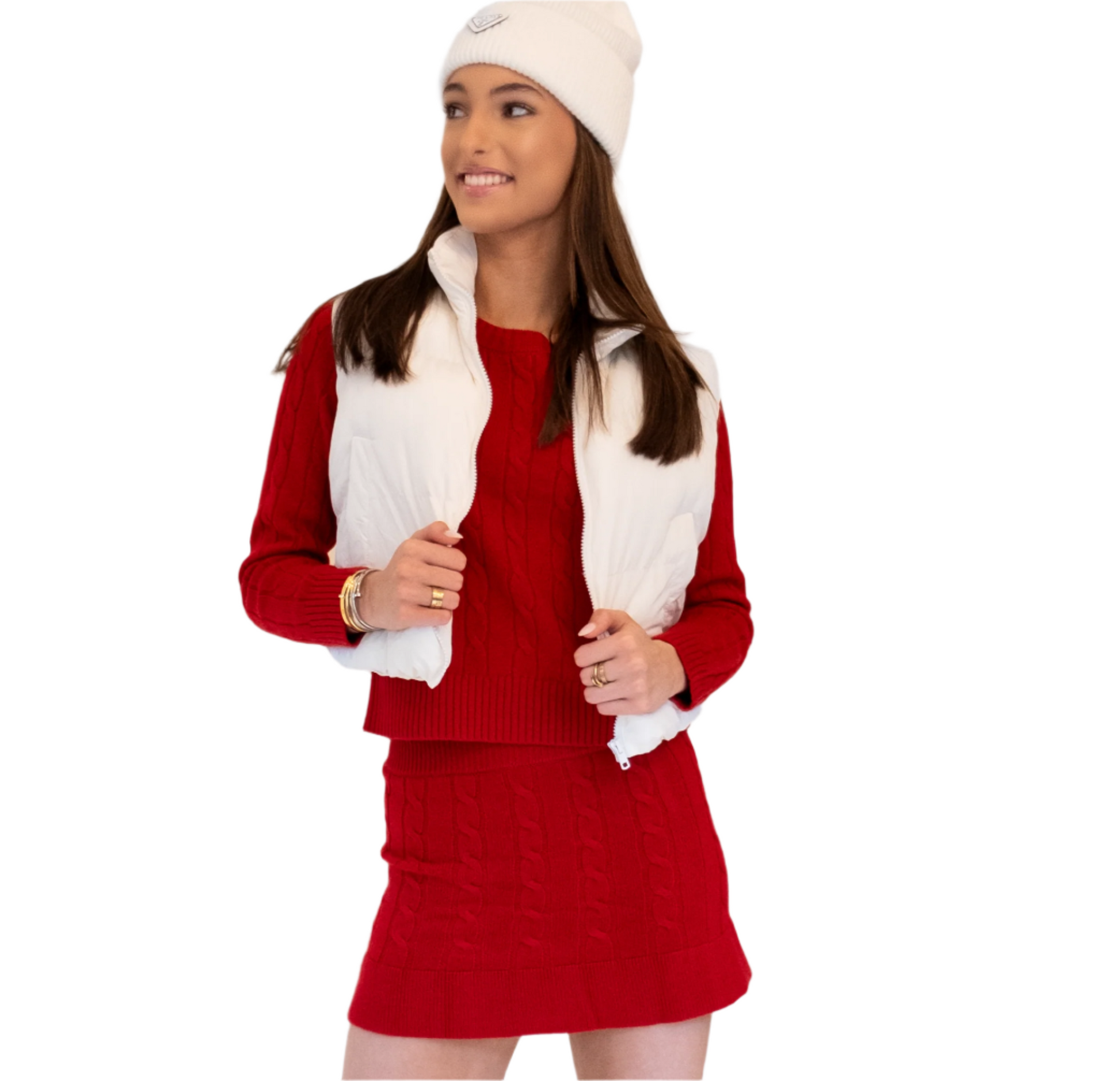 Channel elegance and sophistication with our Ivy League Skirt. Made from a preppy red knit, this skirt perfectly pairs with the matching sweater for a coordinated and luxurious look. Perfect for any occasion, embrace luxury with this exclusive set.
