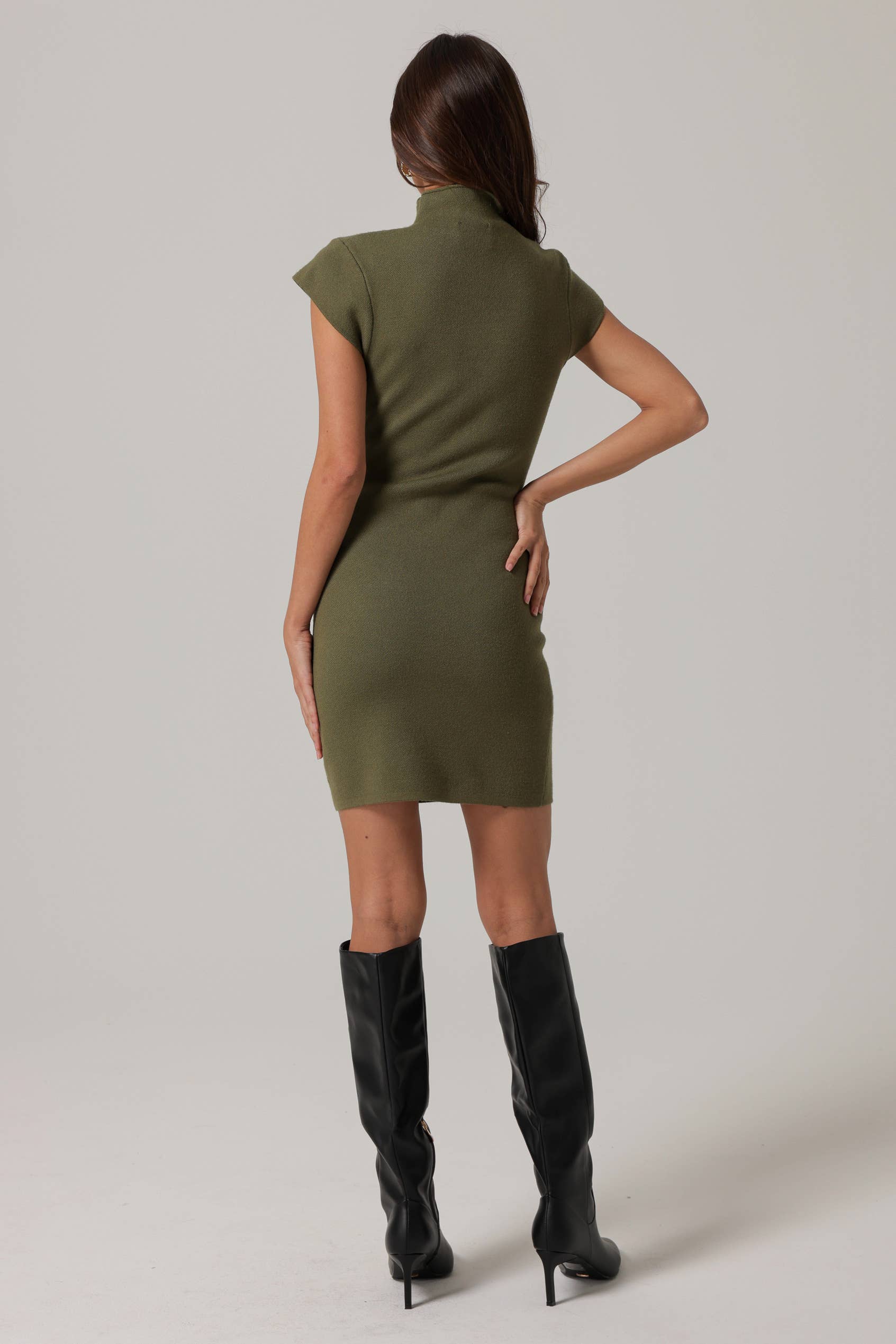 Meet your new go-to dress—the one you'll reach for again and again. This olive knit sweater dress is cozy without the bulk, cute without trying too hard, and versatile enough to work with basically everything in your closet. Throw it on with sneakers for a laid-back vibe, swap them for heels when you're feeling fancy, or layer it over a crisp white shirt for that effortlessly put-together look. Soft, forgiving, and endlessly wearable—this is the dress that does it all.
