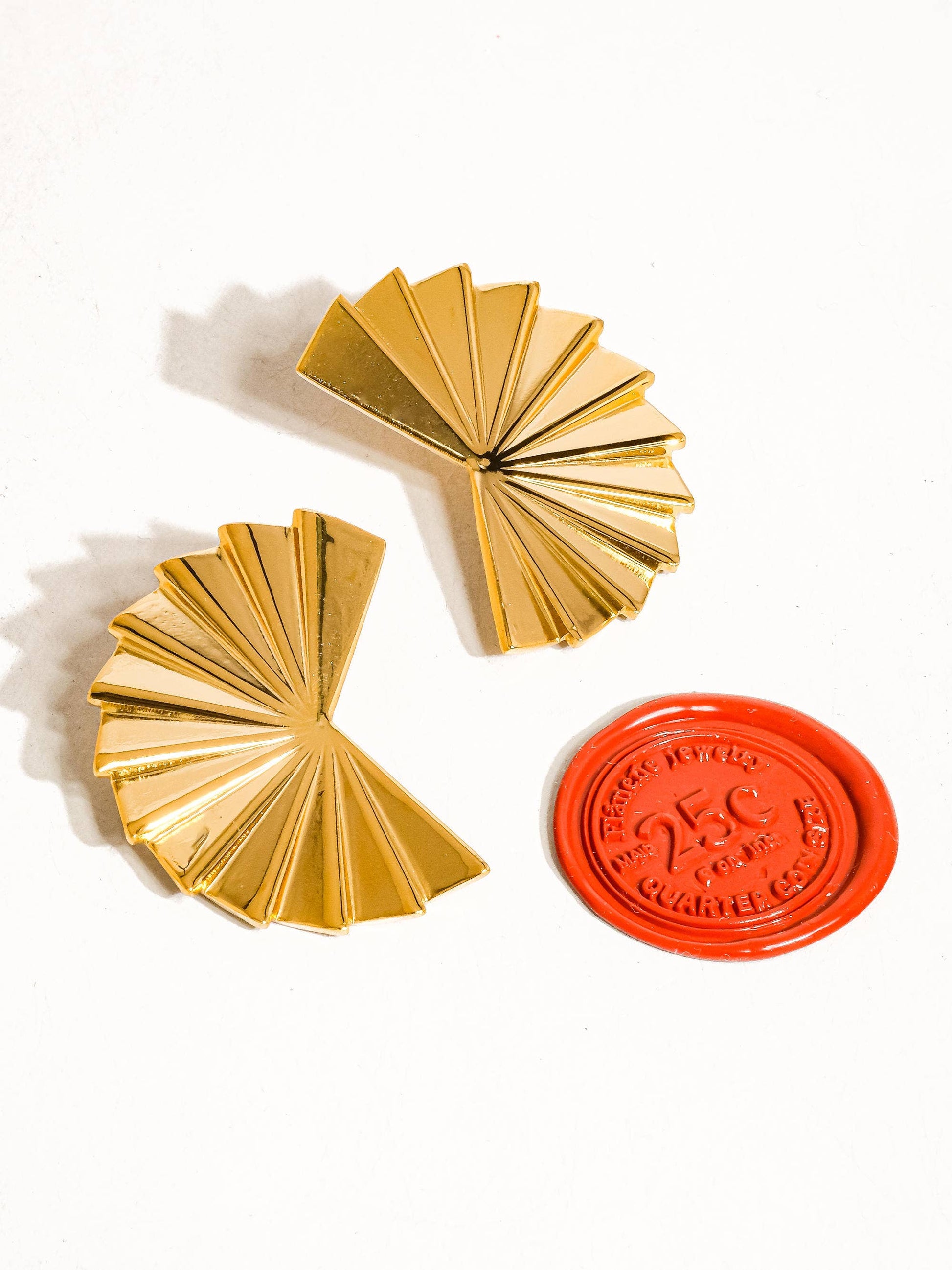 Soline 18K Gold Non-Tarnish Folded Fan Earring: Yellow Gold