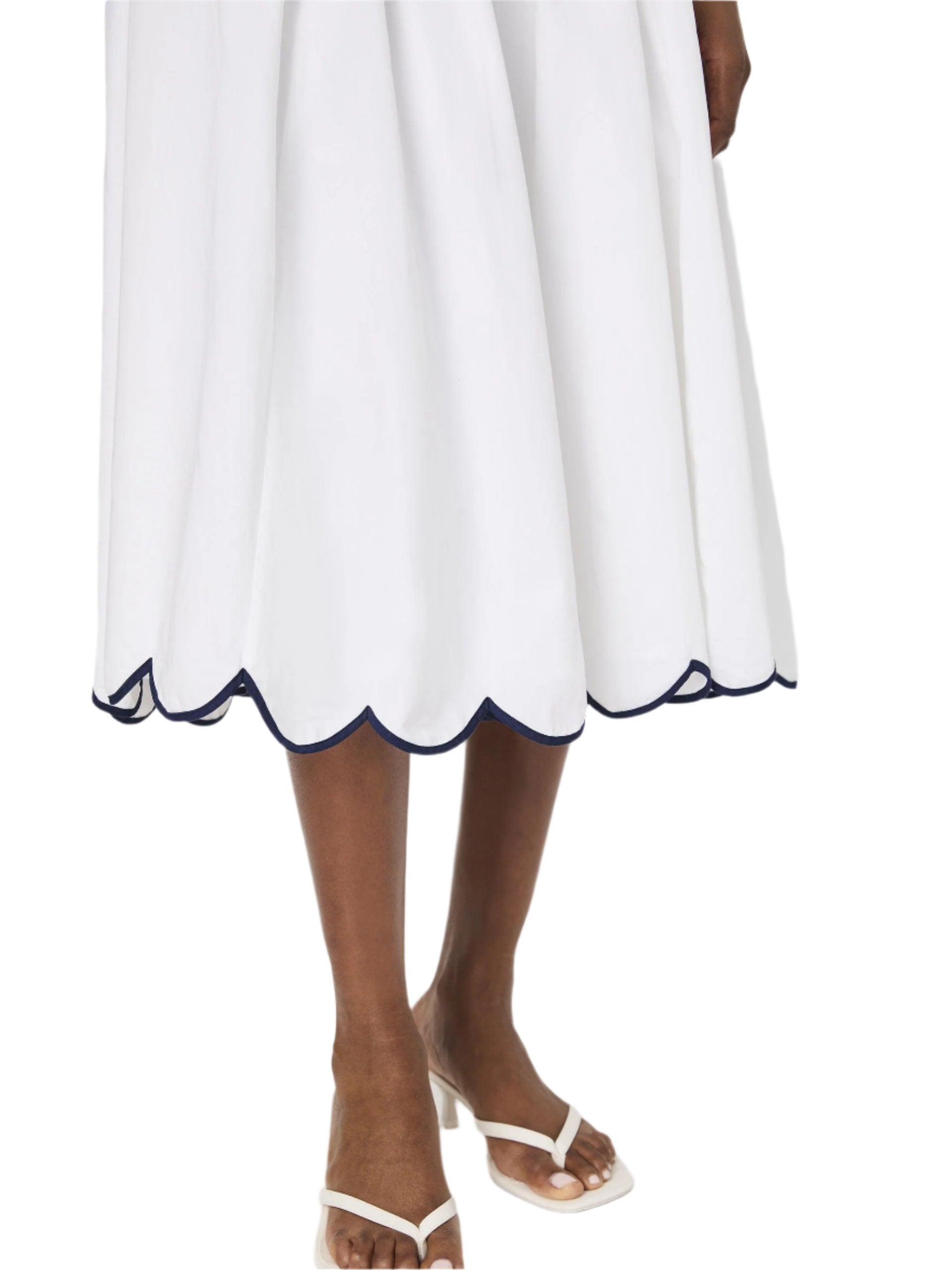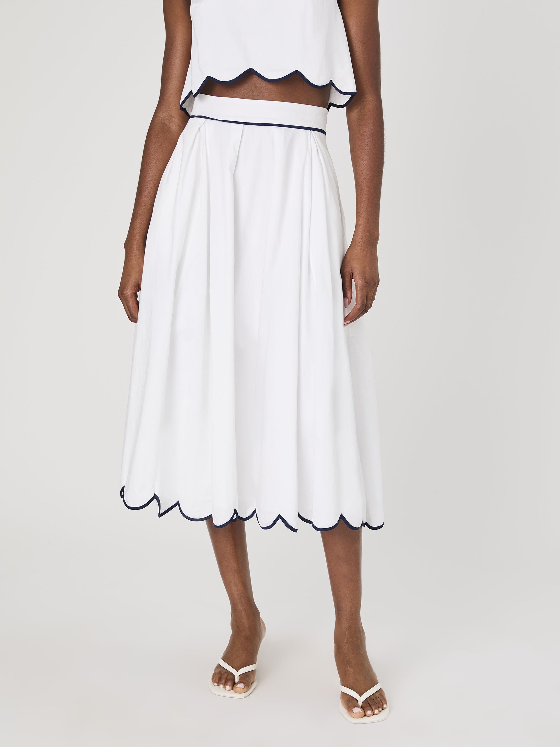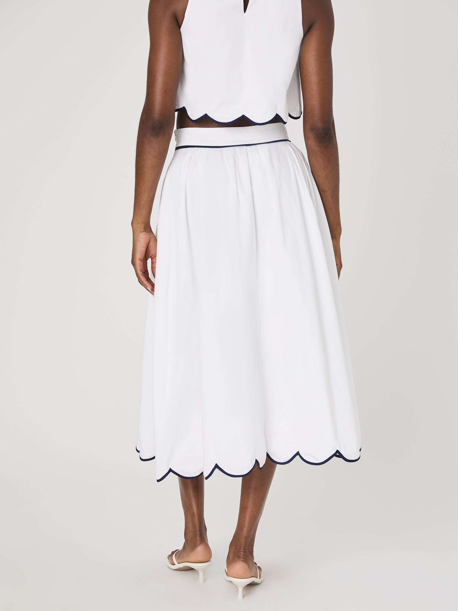 White Cotton Scallop Midi Skirt